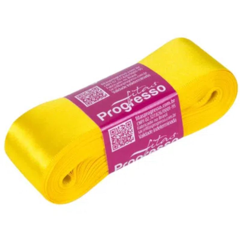 FITA DE CETIM PROGRESSO 30MM - 10M COR 763 AMARELO - 01 UNIDADE - PROGRESSO - LOJA DO ABENÇOADO