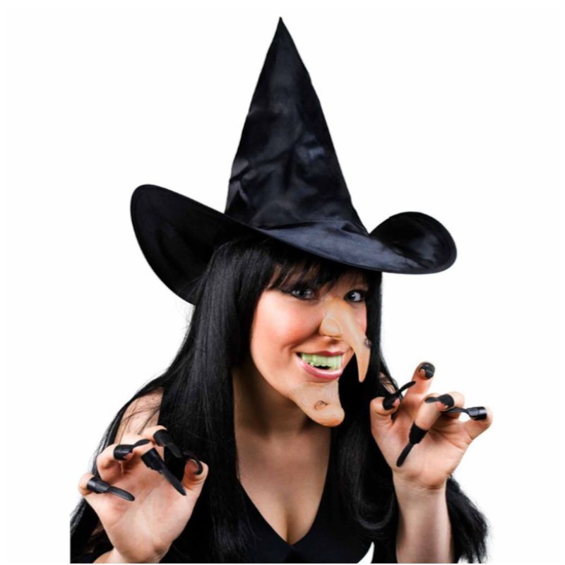 - vem chápeu de bruxa , nariz , unhas , dentes e queixo