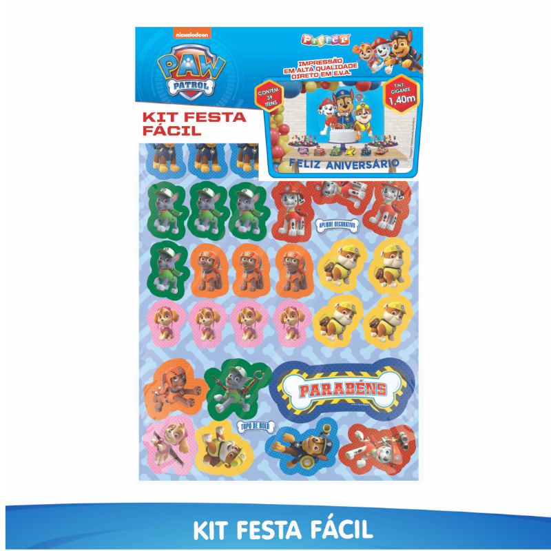 O Kit Festa Fácil PATRULHA CANINA é ideal para sua festa. Fácil de manusear, você pode utilizar de várias maneiras dentro de uma decoração PATRULHA CANINA. Use sua imaginação e utilize de diversas formas como, enfeite para parede, decoração para mesas, tanto mesa principal, quanto mesa para convidados, quartos Infantis, entre outros. Também pode ser utilizado para atividades recreativas em geral.