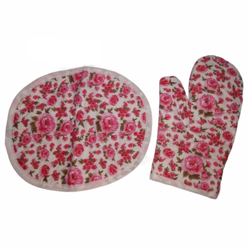 KIT LUVA CULINÁRIA + DESCANSO DE PANELA FLORAL - COD LU32 - COM 01 UNIDADE - RS ACESSÓRIOS - LOJA DO ABENÇOADO