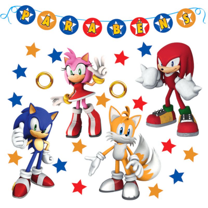 KIT PAINÉIS DECORATIVOS FESTA SONIC - EM EVA - REF 357016 - COM 01 UNIDADE - PIFFER - LOJA DO ABENÇOADO