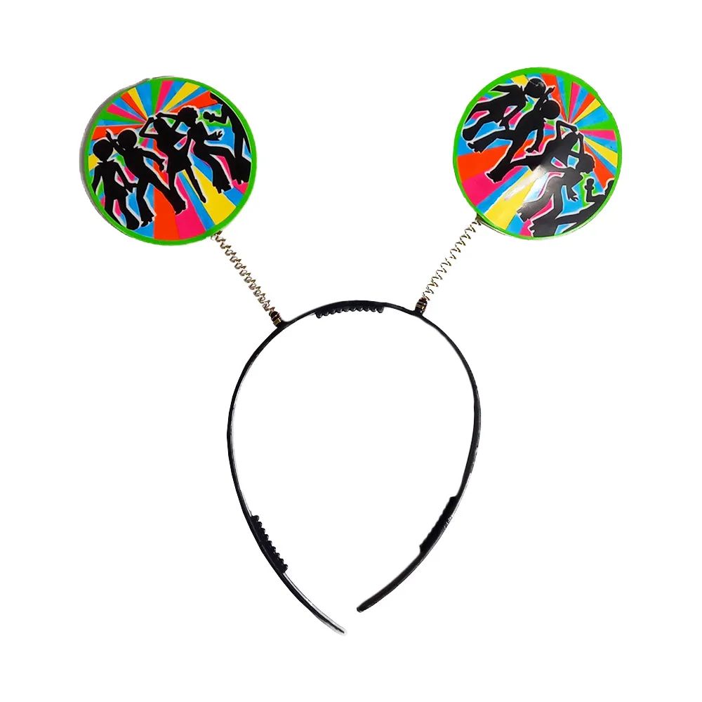 A Tiara de Festa Retrô Neon são fabricados em materiais de qualidade para ficar super bonito como acessório para sua festa. Ele vem em um modelo comum de tiaras em preto que ajusta bem na cabeça, com antenas estilosas que se movimentam através de uma mola e topos da antes em pinturas com cores Neon que brilham quando utilizado a luz negra sobre elas. E imagens de pessoas dançando com roupas retrô.