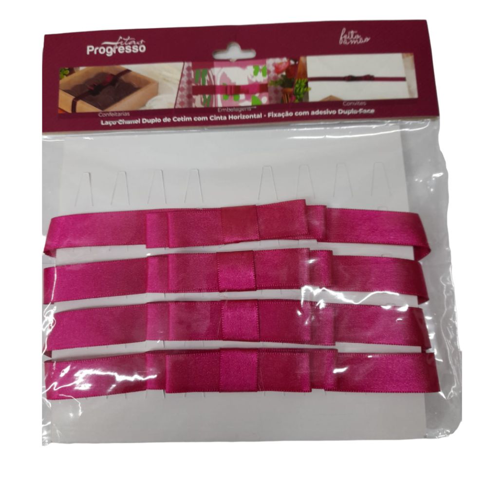 LAÇO CHANEL DUPLO DE CETIM ROSA - 4 UNIDADES - PROGRESSO FITAS - LOJA DO ABENÇOADO