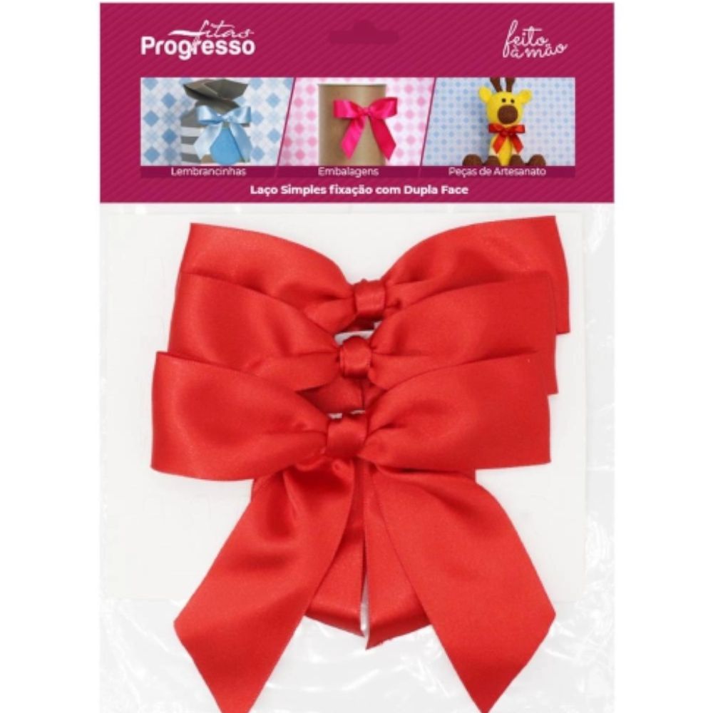 LAÇO SIMPLES VERMELHO FIXAÇÃO FACE DUPLA - 3 UNIDADES - PROGRESSO FITAS - LOJA DO ABENÇOADO