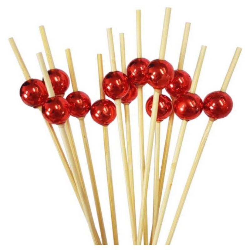 Use o Palito em Bambu p/ petiscos com Bolinhas Vermelhas e deixe seus coquetéis e alimentos com uma decoração diferenciada, indicada para festas temáticas.