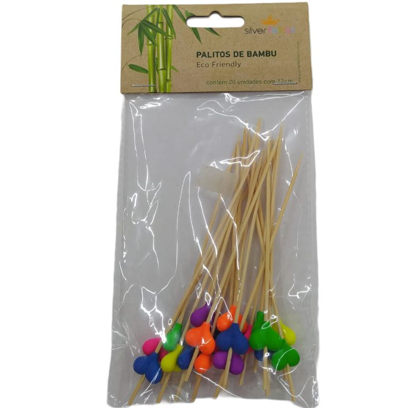 PALITO EM BAMBU PARA PETISCOS COM CORAÇÕES COLORIDOS - 20 UNIDADES - HA214 - SILVER FESTAS - LOJA DO ABENÇOADO