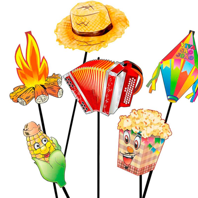 Deixe sua Festa Junina mais bonita e decorada com os Palitos Decorativos de Festa Junina. Conta com um lindo desenho e figuras sortidas que vão encantar a criançada e todos de sua festa!
