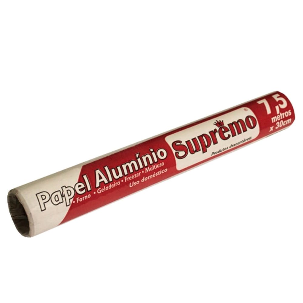 PAPEL DE ALUMÍNIO 7,5M 30CM - 1 UNIDADE - SUPREMO - LOJA DO ABENÇOADO