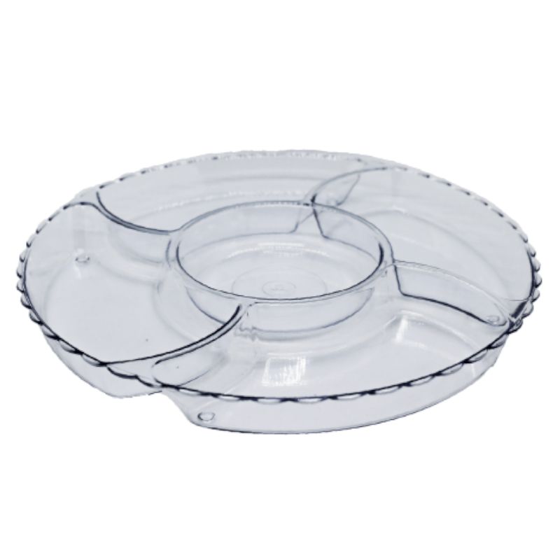 Bandeja transparente; ideal para você colocar petiscos, e deixar bem separadinho.