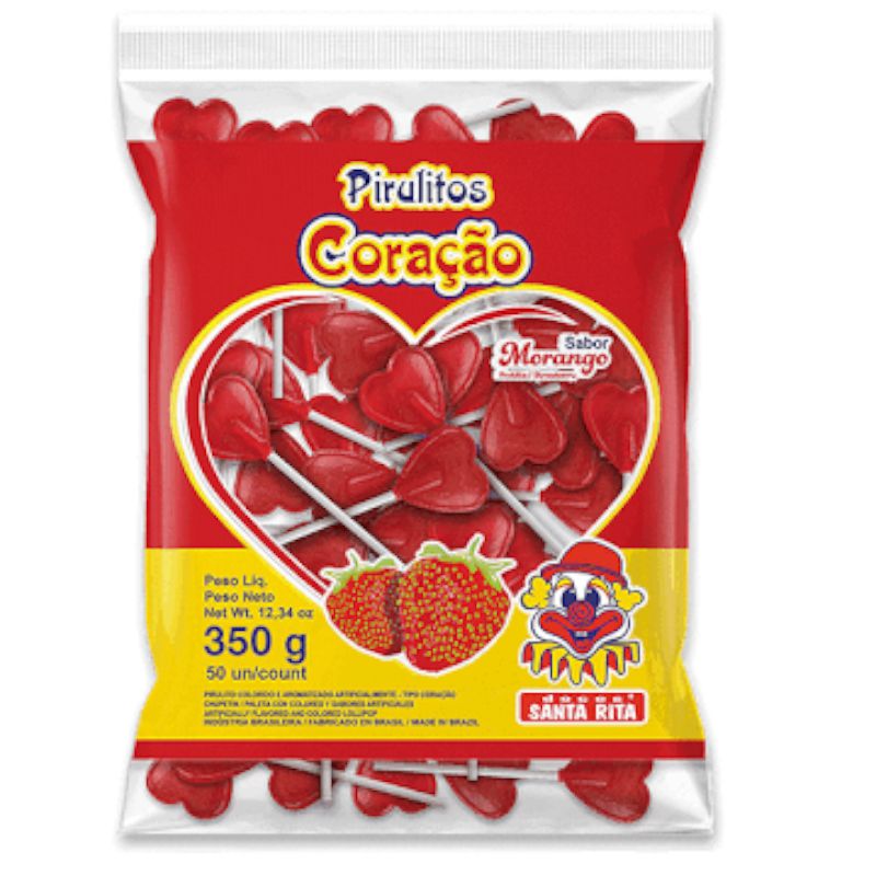PIRULITO CORAÇÃO SABOR MORANGO - CONTÉM 350G - SANTA RITA - LOJA DO ABENÇOADO