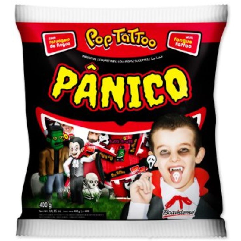 PIRULITO POP TATTOO PANICO - HALLOWEEN - 400GR - COM 50 UNIDADES - BOAVISTENSE - LOJA DO ABENÇOADO