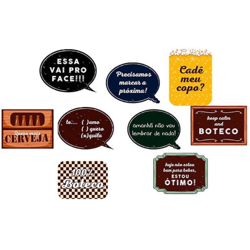 PLAQUINHA PARA FOTOS COM VARETA - FESTA BOTECO - CONTÉM 09 UNIDADES - REGINA FESTAS - LOJA DO ABENÇOADO