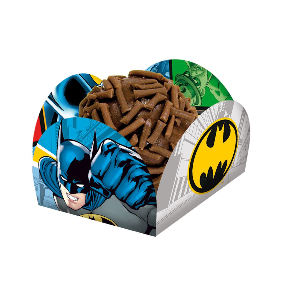 Utilize a Forminha para Doces Festa Batman para decorar a mesa do bolo, servindo docinhos como brigadeiros, beijinhos e outros conforme sua criatividade.