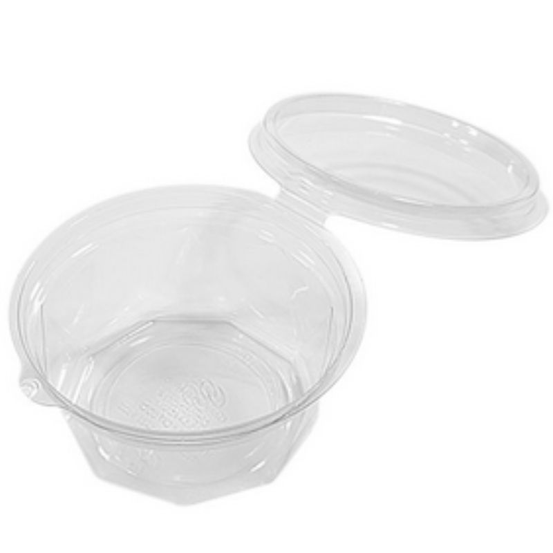 Pote plástico redondo com tampa articulada de 350ml G-750D. Ideal para armazenar e transportar doces e sobremesas.