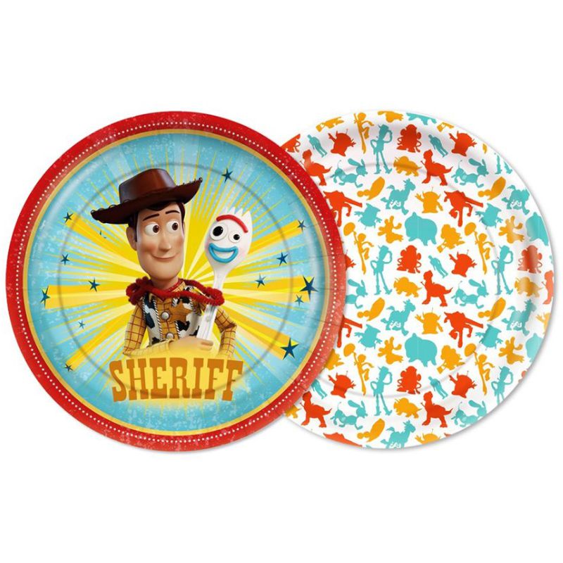 PRATO DE PAPEL REDONDO 18 CM FESTA TOY STORY 4 - COM 12 UNIDADES - REGINA FESTAS - LOJA DO ABENÇOADO