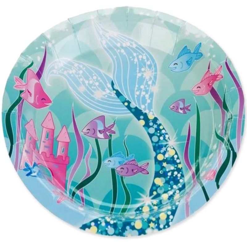 PRATO DE PAPEL REDONDO 18CM FESTA FUNDO DO MAR AZUL - 10 UNIDADES - SILVER PLASTIC - LOJA DO ABENÇOADO