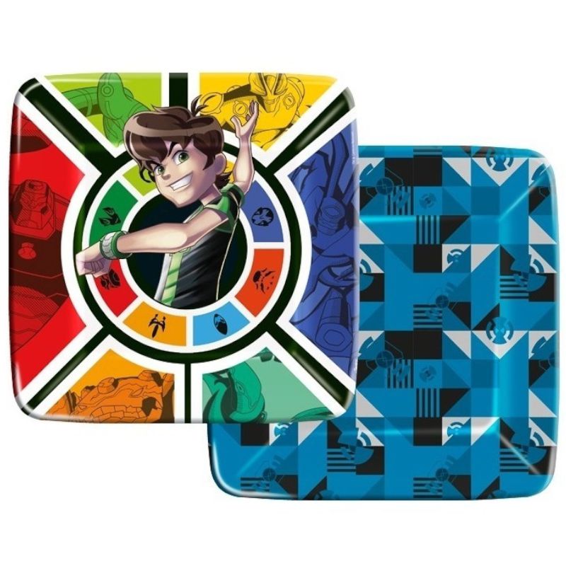 PRATO DESCARTÁVEL QUADRADO 18CM FESTA BEN 10 - 08 UNIDADES - REGINA FESTAS - LOJA DO ABENÇOADO