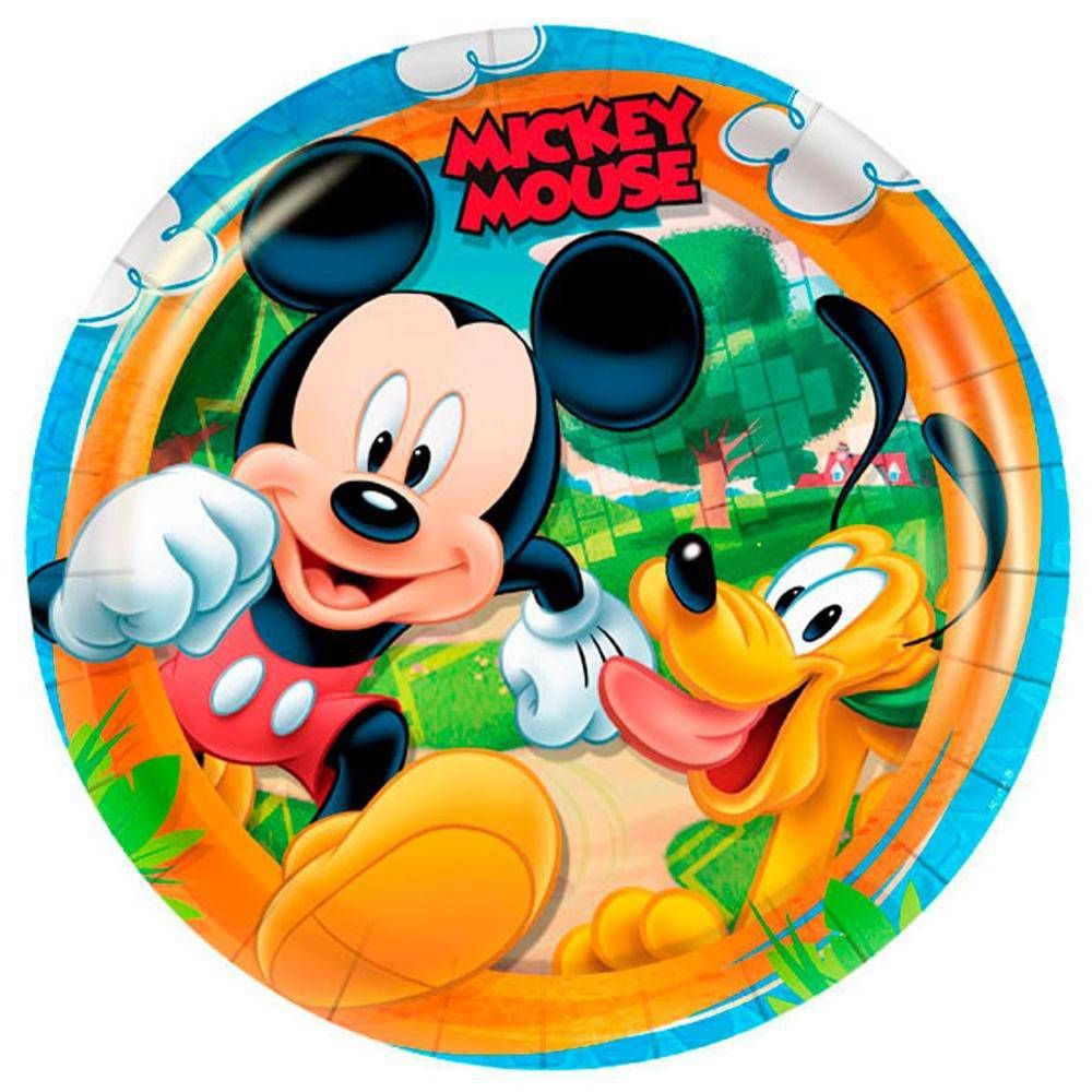 Prato em papel cartão descartável ilustrado com o lindo tema Diversão Mickey.