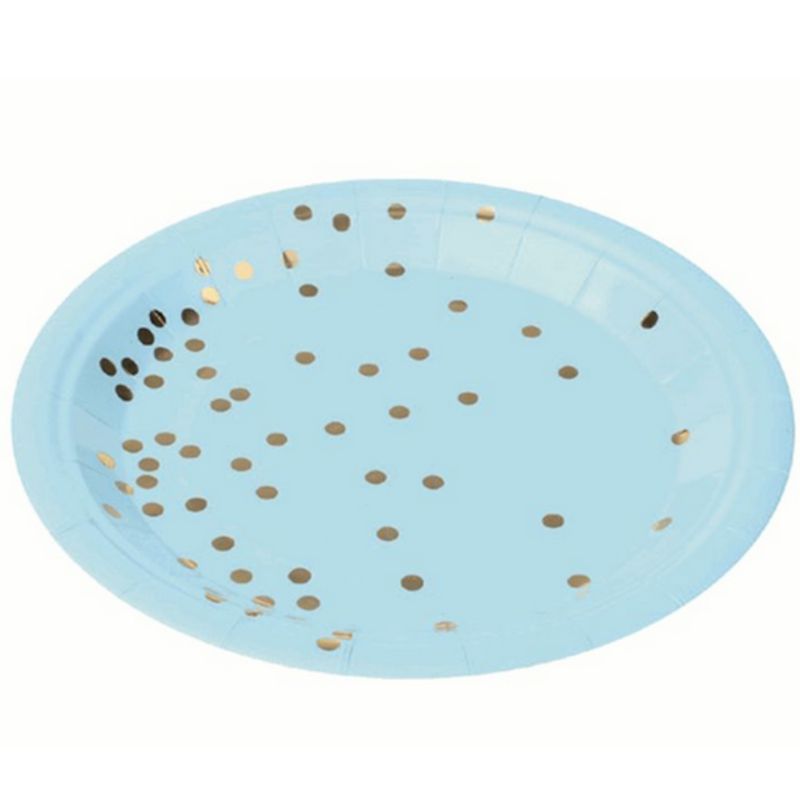 PRATO PAPEL 18CM CONFETES DOURADOS AZUL BEBE - 10 UNIDADES - SILVER FESTAS - LOJA DO ABENÇOADO