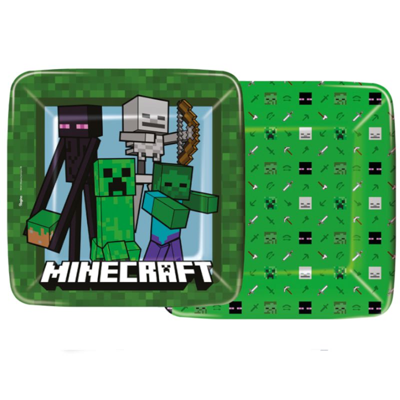 PRATO PAPEL QUADRADO DESCARTÁVEL FESTA MINECRAFT - CONTÉM 12 UNIDADES - 18CM - REGINA FESTAS - LOJA DO ABENÇOADO