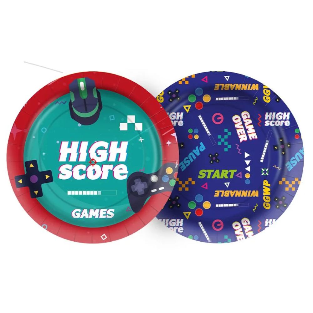 PRATO PAPEL REDONDO 18 CM FESTA GAMES - CONTÉM 12 UNIDADES - REGINA FESTAS - LOJA DO ABENÇOADO