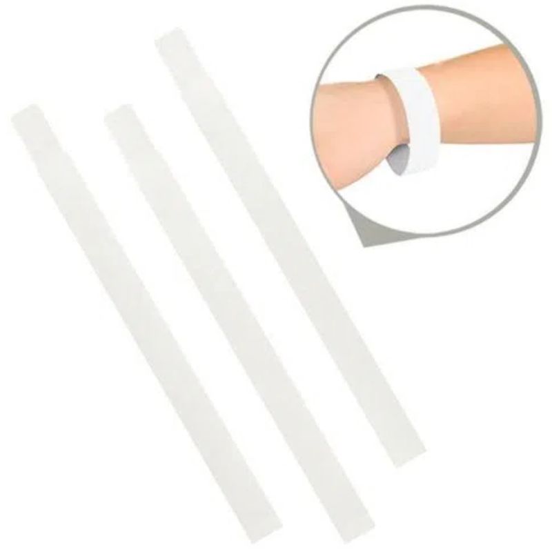 Pulseira com lacre Adesivo Inviolável, que impede a transferência após a correta aplicação.