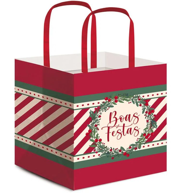 SACOLA PARA PANETONE NATAL BOAS FESTAS - TAM 27,5X22X16 CM - COM 1 UNIDADE - CROMUS - LOJA DO ABENÇOADO