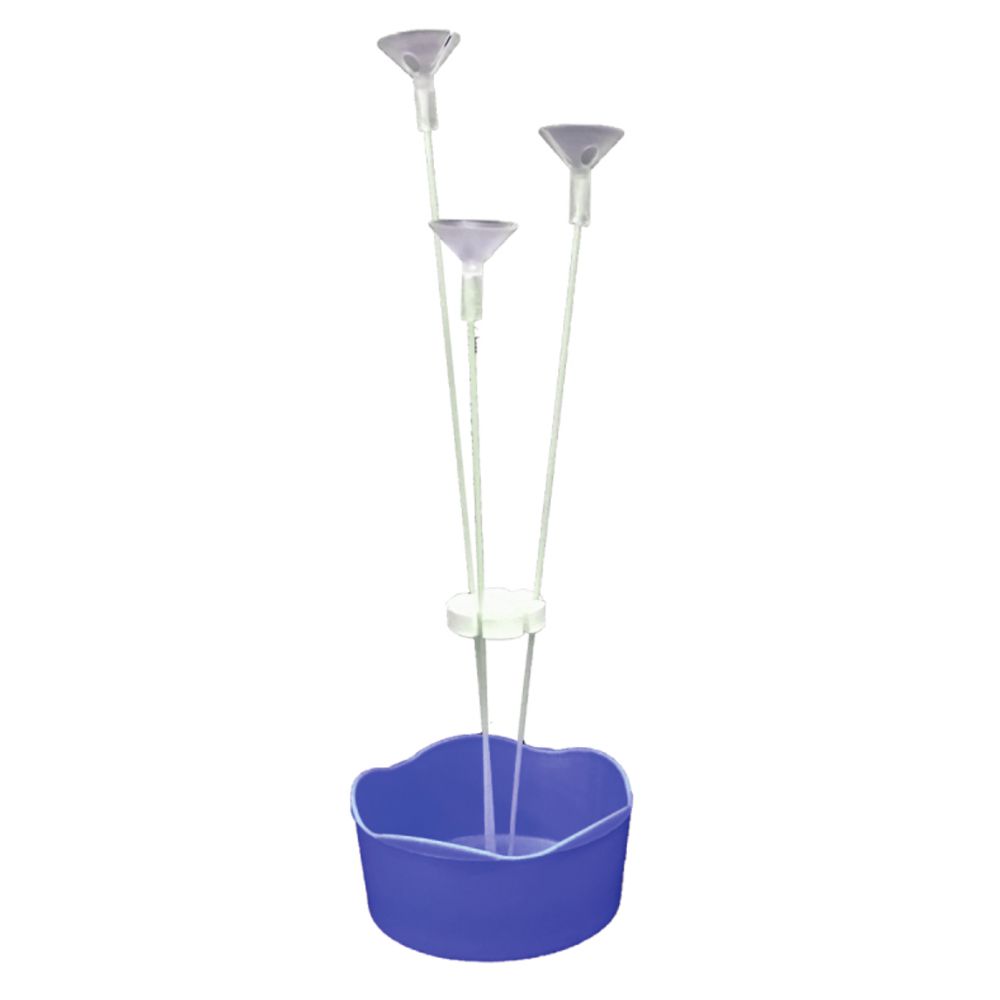 Características do Produto: - 1 cachepô plástico na cor azul - 3 hastes de fibra de vidro com ponteiras de plástico tipo copinho aplicadas nas pontas. - 1 Regulador de E.V.A. para ajustar o espaçamento entre as varetas de acordo com o modelo de balão utilizado - Altura da haste maior 27cm - Diâmetro do cachepô: 10 cm