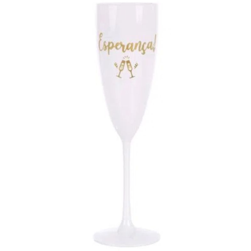 TAÇA CHAMPAGNE BRANCA " ESPERANÇA! '' - 01 UNIDADE - COMIX - LOJA DO ABENÇOADO