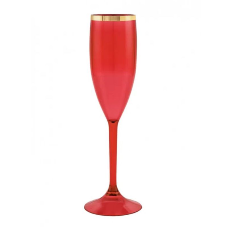 TAÇA DE CHAMPANHE ACRÍLICO - VERMELHA COM LINHA DE OURO NA BORDA - 100ML - LSCTOYS - LOJA DO ABENÇOADO