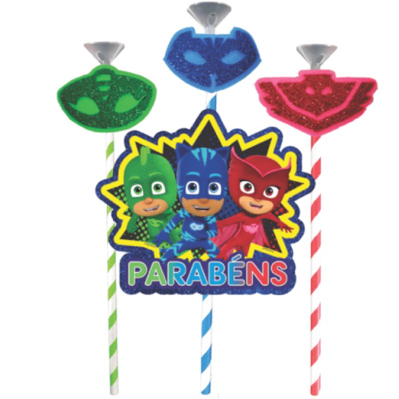 TOPO DE BOLO 3D FESTA PJ MASKS - REF 383039 - 01 UNIDADE - PIFFER - LOJA DE ABENÇOADO