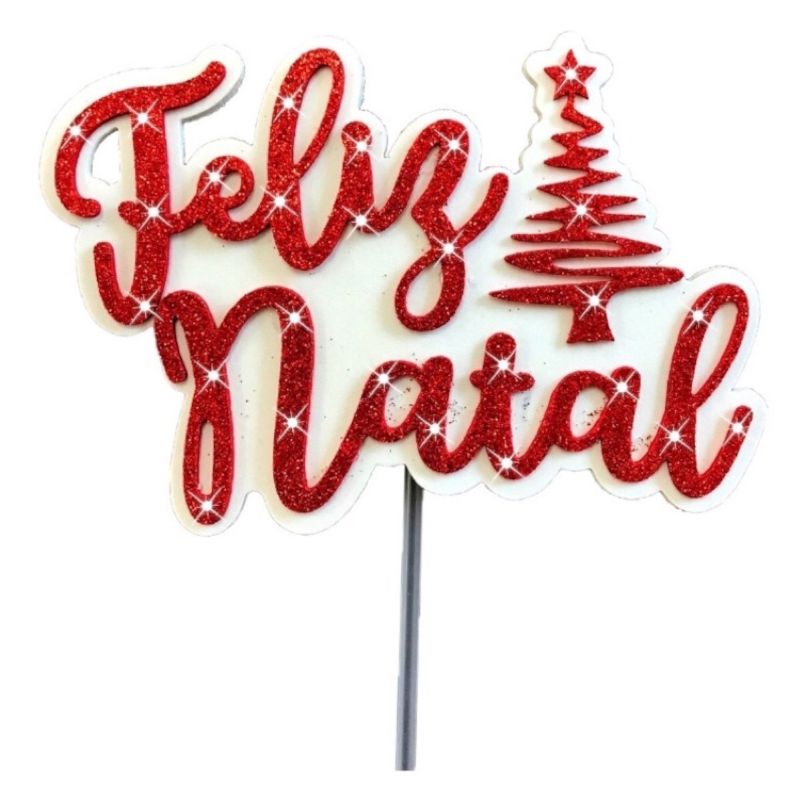 TOPO DE BOLO DE NATAL ¨FELIZ NATAL¨ VERMELHO 32CM - CONTÉM 01 UNIDADE - PIFFER - LOJA DO ABENÇOADO