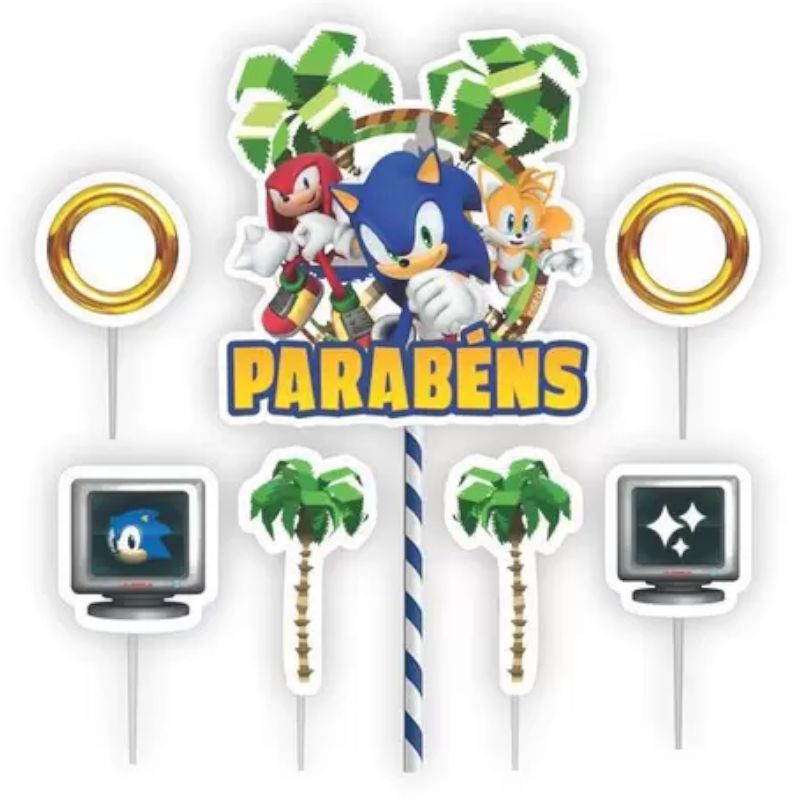 TOPO DE BOLO DECORATIVO IMPRESSO PARA FESTA SONIC EM EVA - REF.: 357031 - PIFFER - LOJA DO ABENÇOADO