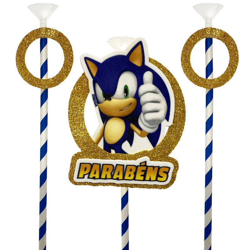 TOPO DE BOLO FESTA SONIC - REF 357030 - COM 01 UNIDADE - PIFFER - LOJA DO ABENÇOADO