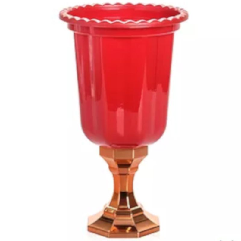 VASO LINHA DIAMANTE VERMELHO - 23X13 CM - 850 ML - BASE CROMADA ROSE GOLD - FESTPLASTIK - LOJA DO ABENÇOADO