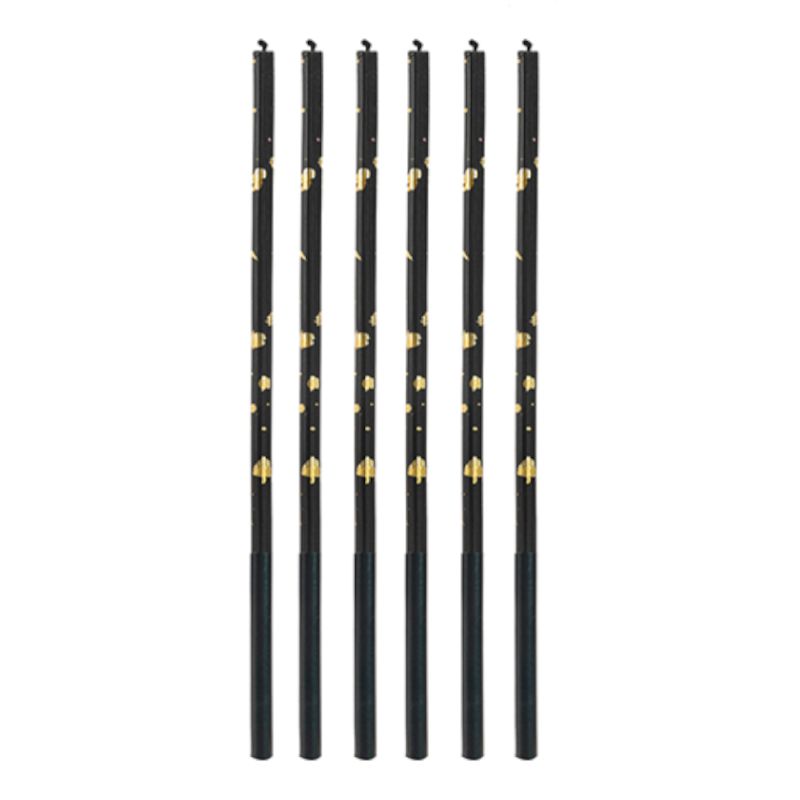 VELA ANIVERSÁRIO PALITO GIGANTE PRETA COM DOURADO 17 CM - CONTÉM 06 UNIDADES - SILVER FESTAS - LOJA DO ABENÇOADO