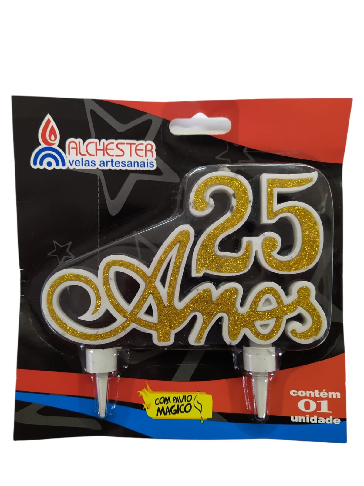 VELA DE ANIVERSARIO 25 ANOS DE OURO - CONTÉM 1 UNIDADE - ALCHESTER - LOJA DO ABENÇOADO