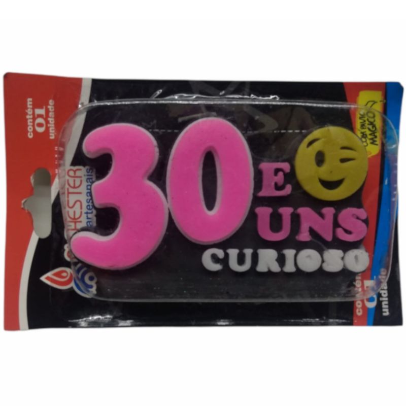VELA DE ANIVERSÁRIO 30 E UNS CURIOSO - CONTÉM 01 UNIDADE - ALCHESTER - LOJA DO ABENÇOADO