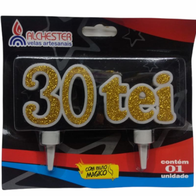 VELA DE ANIVERSÁRIO 30TEI OURO - CONTÉM 01 UNIDADE - ALCHESTER - LOJA DO ABENÇOADO