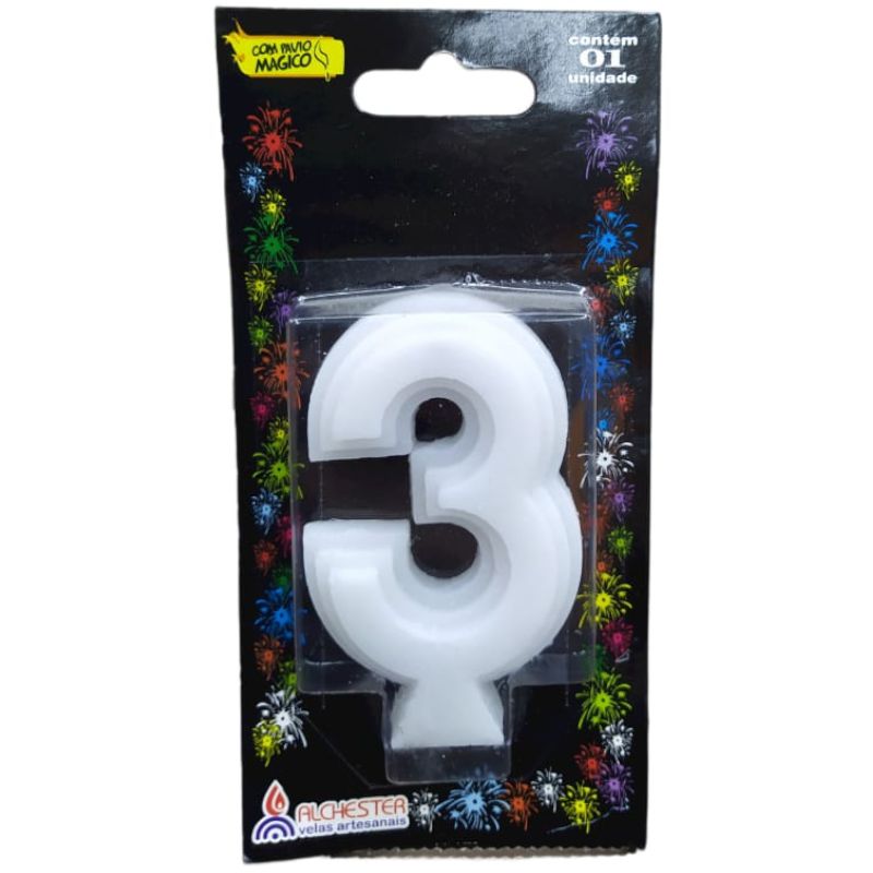 VELA DE ANIVERSÁRIO 3D BRANCO - N° 3 - 01 UNIDADE - ALCHESTER - LOJA DO ABENÇOADO