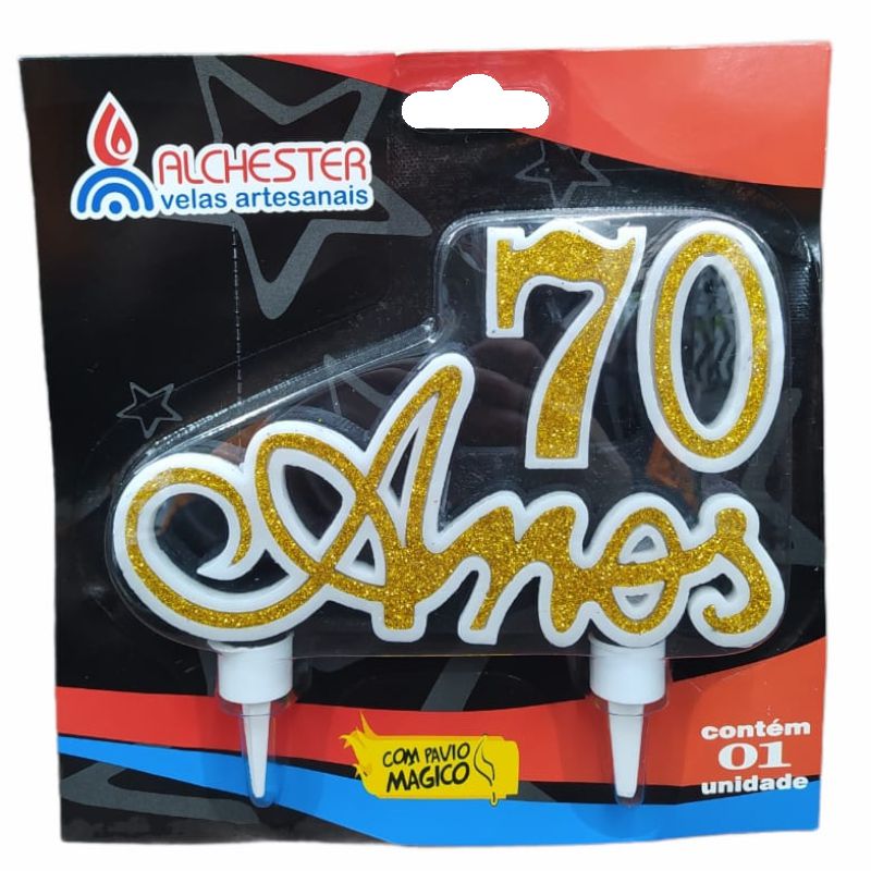 VELA DE ANIVERSÁRIO - 70 ANOS LUXO OURO - CONTÉM 01 UNIDADE - ALCHESTER - LOJA DO ABENÇOADO