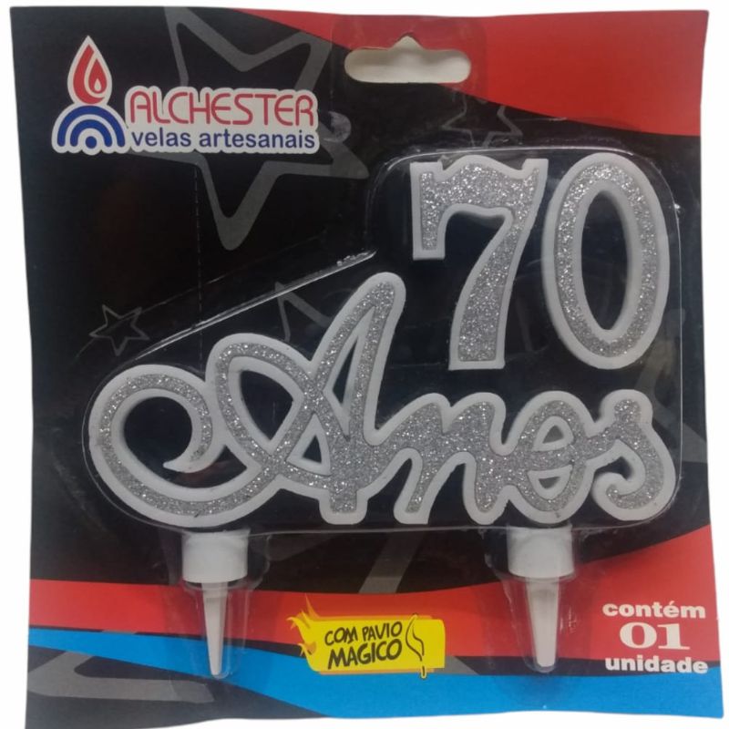 Vela de Aniversário 70 Anos! Linda vela para Festa de 70 anos, para deixar sua festa moderna e muito mais bonita!