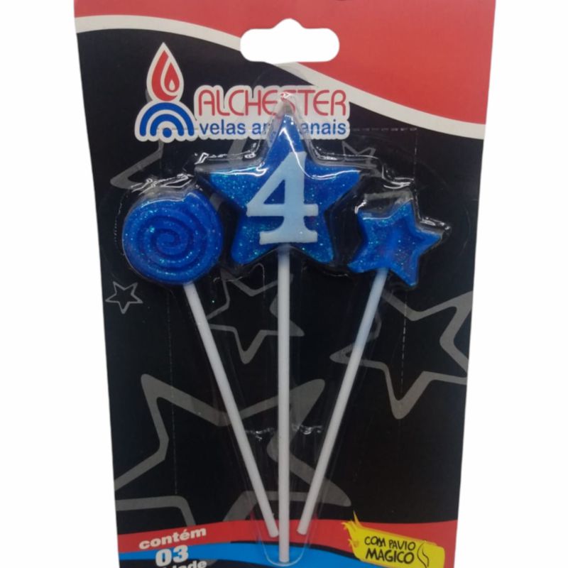 VELA DE ANIVERSÁRIO AZUL - ESTRELA SUPER - N°4 - 01 UNIDADE ALCHESTER - LOJA DO ABENÇOADO