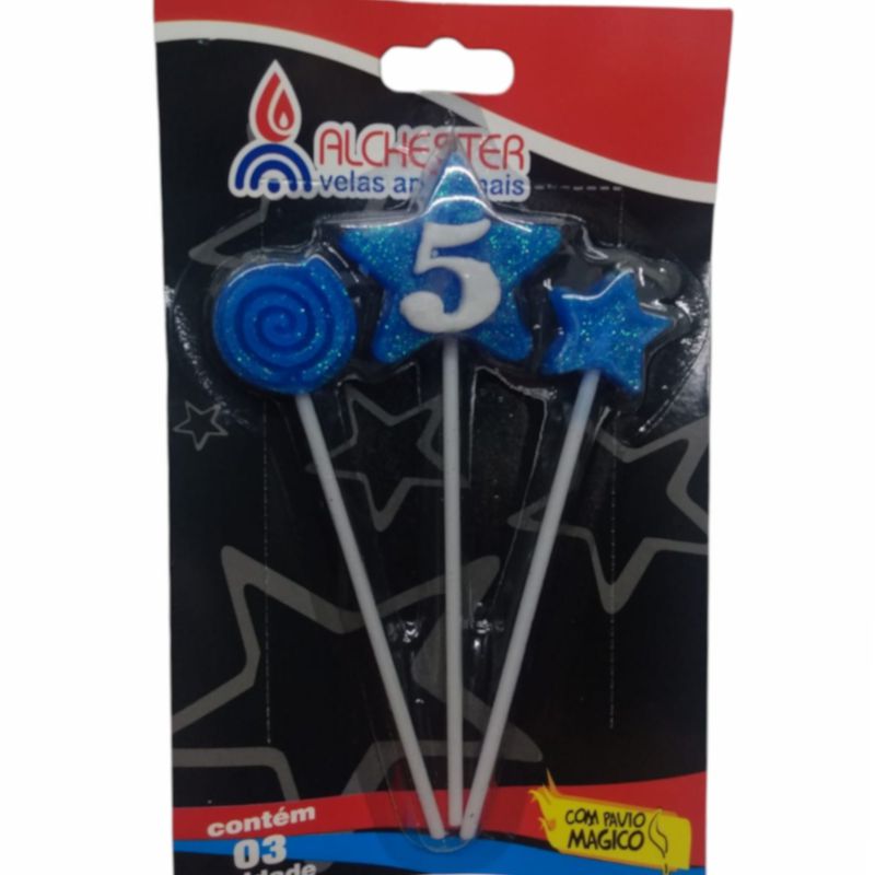 VELA DE ANIVERSÁRIO AZUL - ESTRELA SUPER - N°5 - 01 UNIDADE - ALCHESTER - LOJA DO ABENÇOADO
