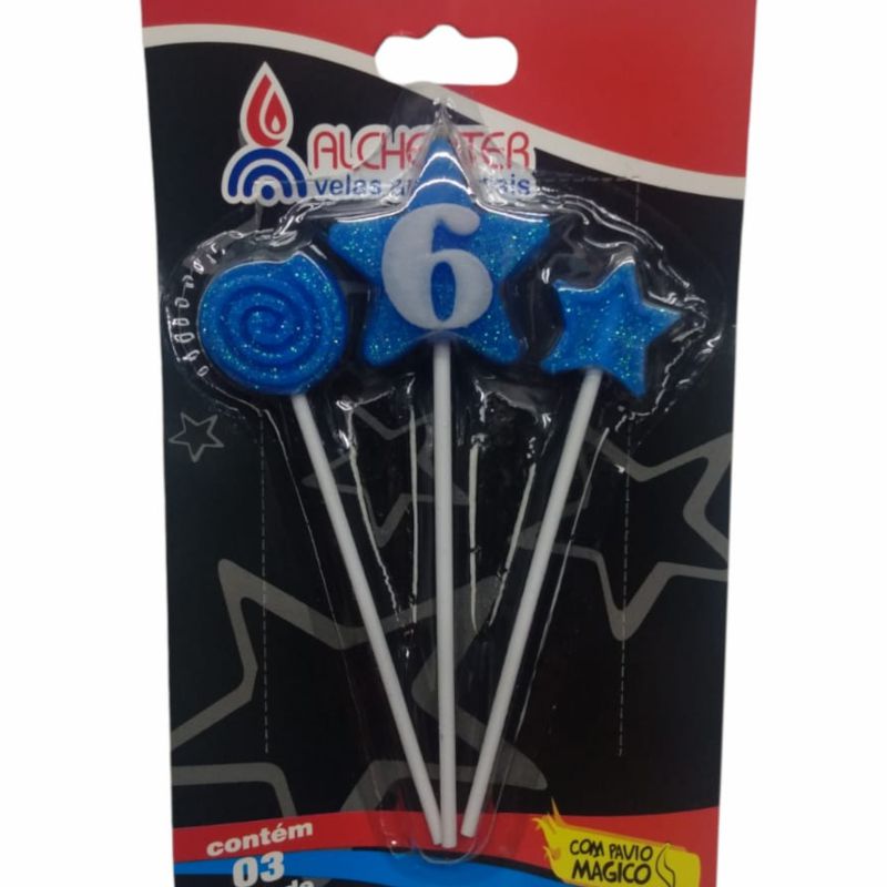 VELA DE ANIVERSÁRIO AZUL - ESTRELA SUPER - N°6 - 01 UNIDADE ALCHESTER - LOJA DO ABENÇOADO