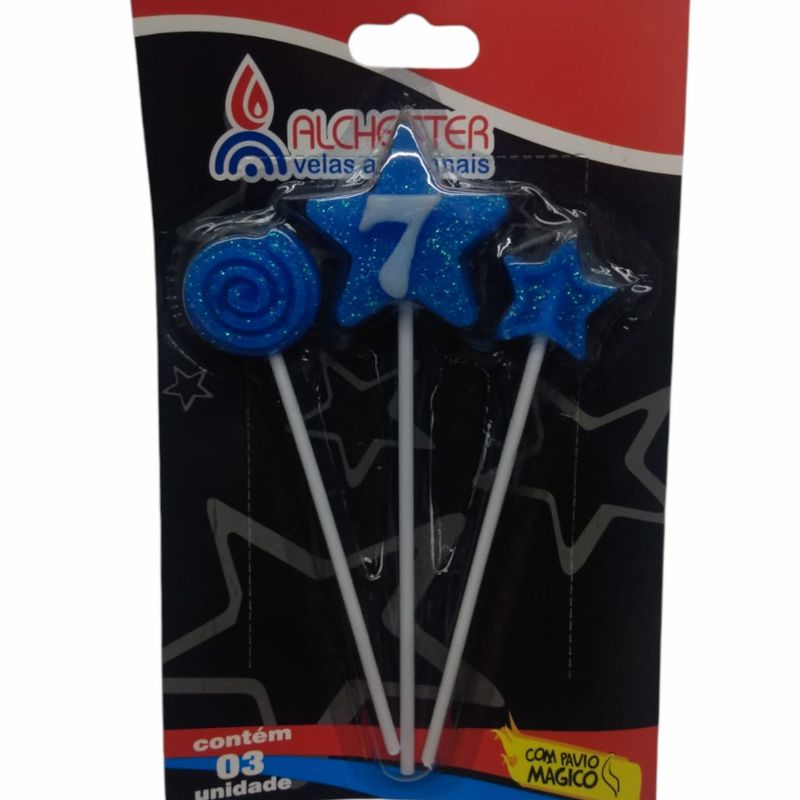 VELA DE ANIVERSÁRIO AZUL - ESTRELA SUPER - N°7 - 01 UNIDADE ALCHESTER - LOJA DO ABENÇOADO