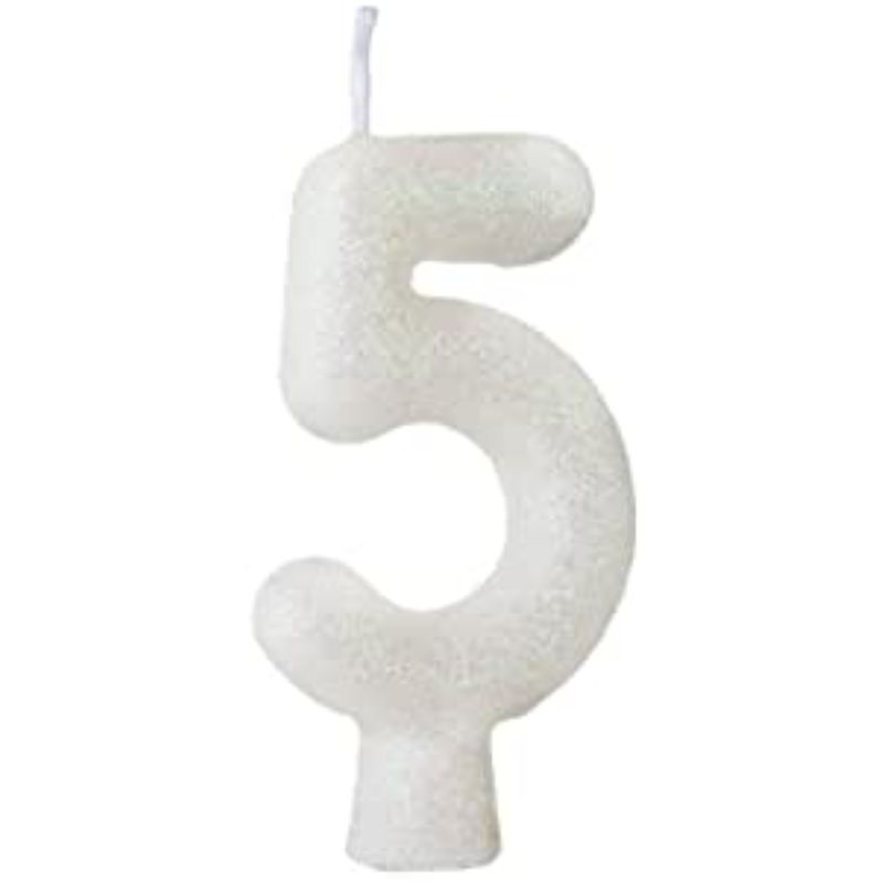 VELA CINTILANTE GLITTER BRANCO - NÚMERO 5 - 01 UNIDADE - REGINA FESTAS - LOJA DO ABENÇOADO