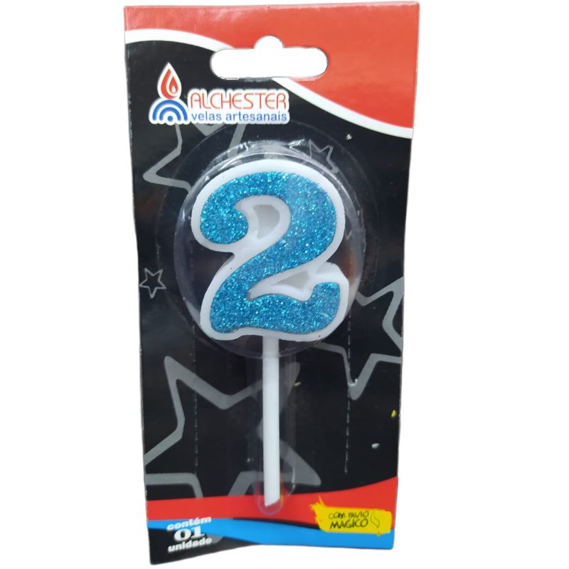 VELA DE ANIVERSÁRIO CITRUS GLITTER AZUL BEBE - N°2 - 01 UNIDADE - ALCHESTER - LOJA DO ABENÇOADO