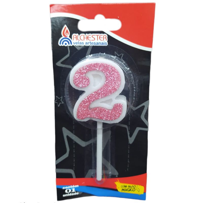 VELA DE ANIVERSÁRIO CITRUS GLITTER ROSA - N°2 - 01 UNIDADE - ALCHESTER - LOJA DO ABENÇOADO