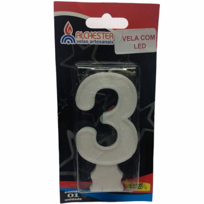 VELA DE ANIVERSÁRIO COM LED N°3 - TAM P - 01 UNIDADE - ALCHESTER - LOJA DO ABENÇOADO
